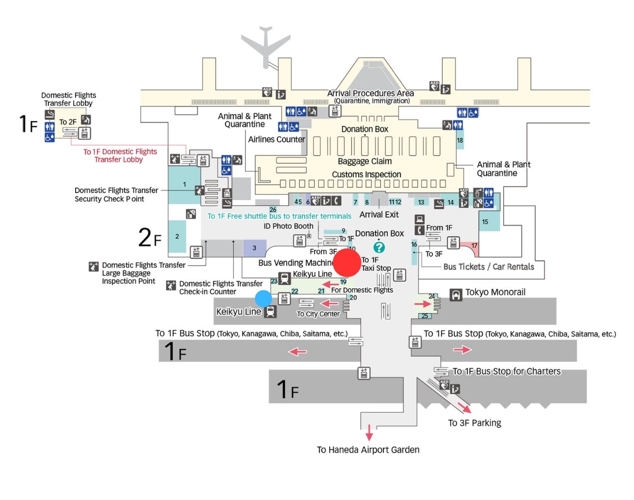 Get on the Monorail. While there are other ways to get from the airport into the city I would recommend the Monorail. The station entrance is right off the arrival lounge, seen bottom right on the map, and all you need to do after buying and tapping your Suica card is board the train in the direction of Hamamatsucho. Then sit back, enjoy the city views and basically feel like you are in the future.